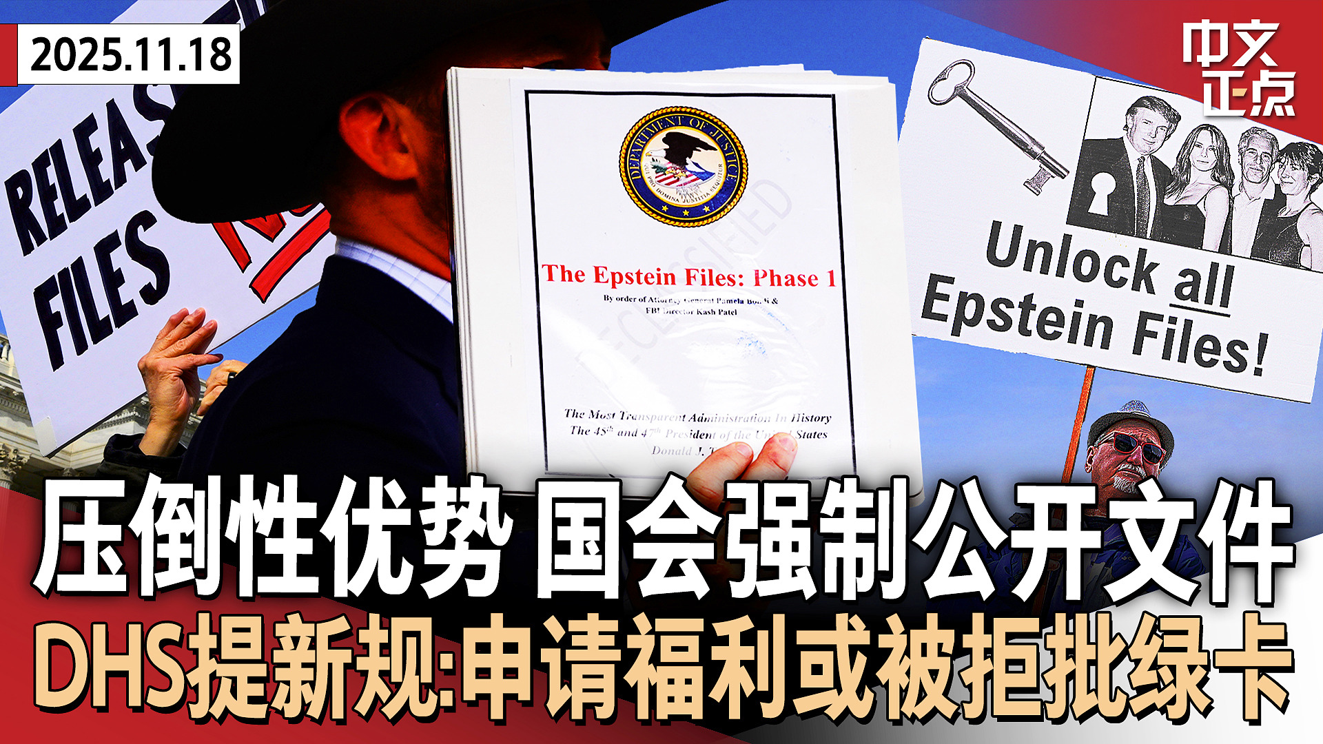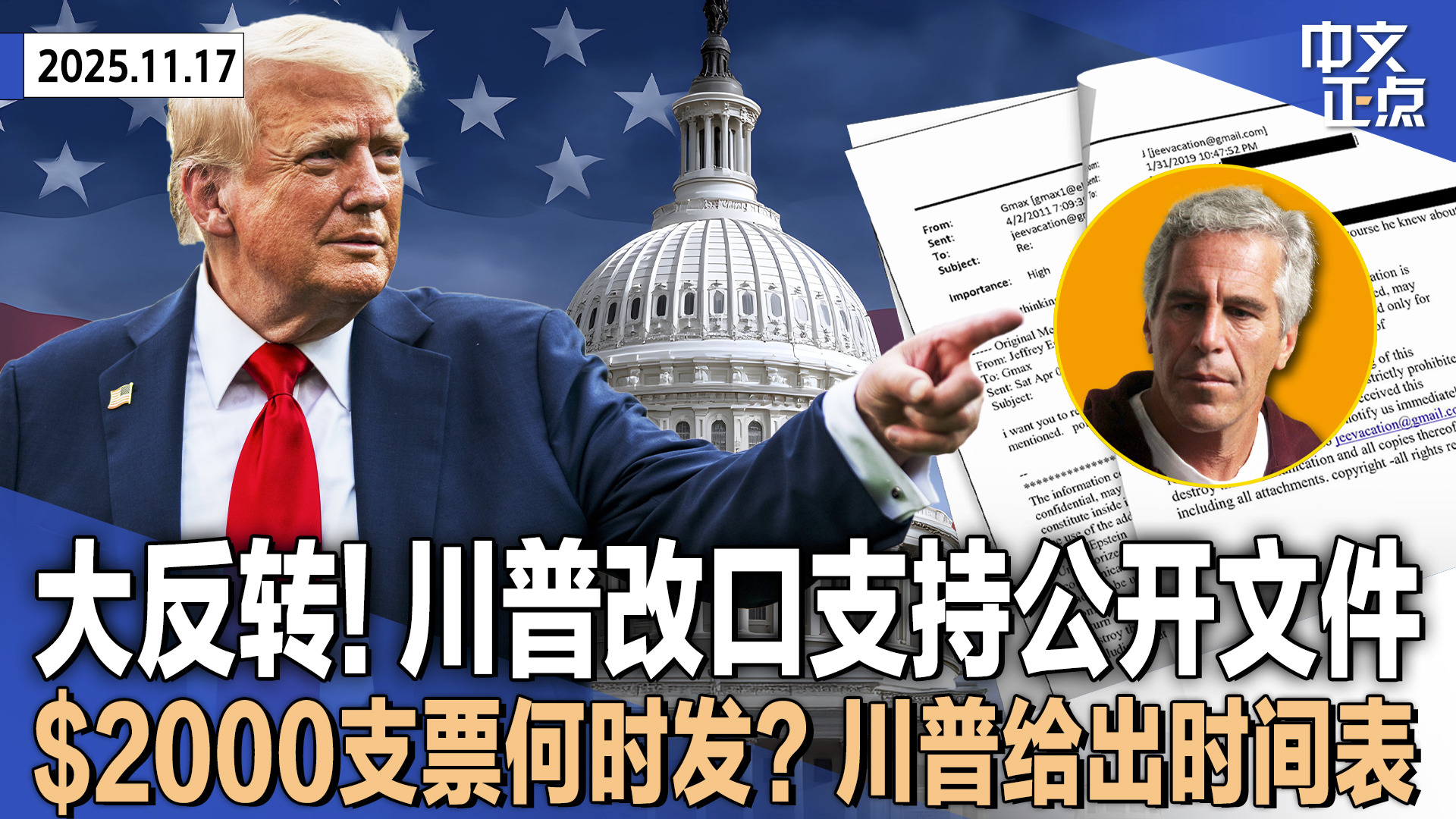 重大转变 川普支持公开爱泼斯坦案文件|$2000关税支票何时发?川普给出时间表|科米案现重大转折|“夏洛特之网”移民突袭 2天逮捕130人|美国大学国际新生入学率暴跌17%《中文正点》25.11.17