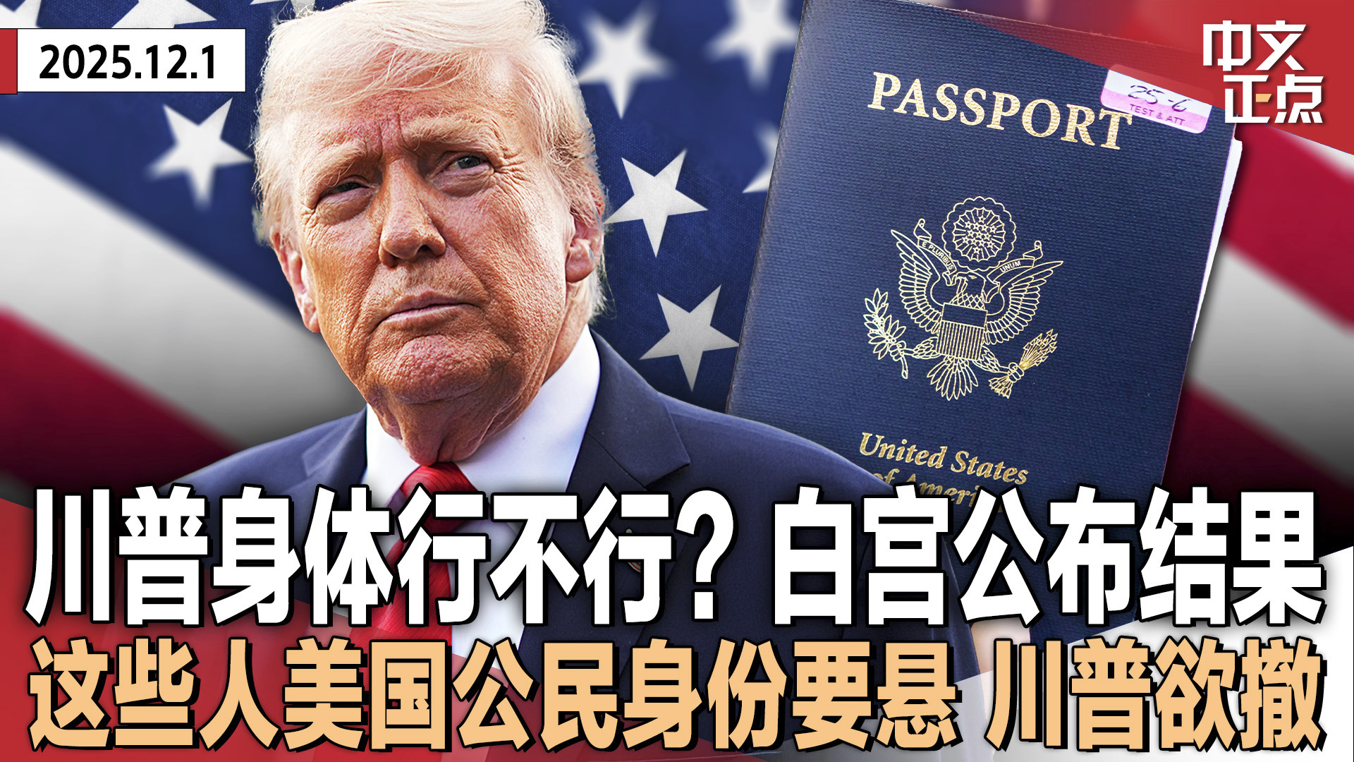 川普回应神秘体检 称结果完美 白宫:总统整体健康状况极佳|入籍不再是护身符?川普欲撤这些人公民身份|机场安检无Real ID者罚$45!明年2月起实施|川普称联储新主席已选定《中文正点》25.12.1