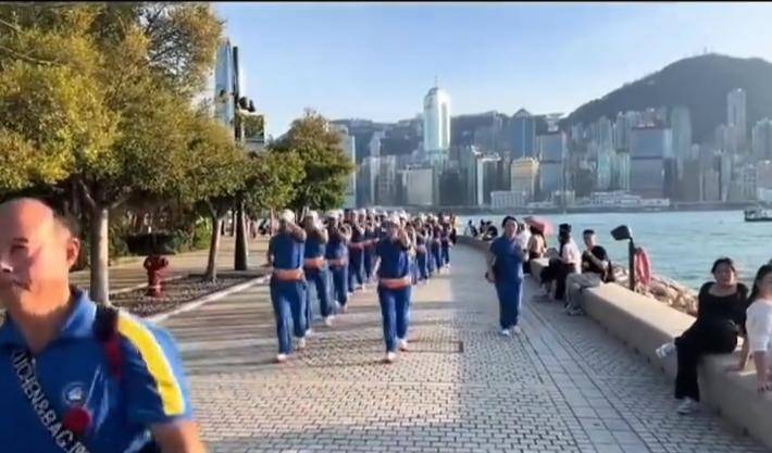 11月10日傍晚,香港维多利亚港星光大道旁,一支由近百名老年人组成的徒步团队浩浩荡荡穿行而过。他们统一身着蓝色运动服,手持便携音响播放着节奏感强烈的音乐,队伍中甚至有人高举旗帜领队。这一场景被游客拍下后迅速引爆网络,话题“暴走团现身香港 音乐打扰其他游客”登上热搜榜首,评论区里“音乐扰民”“公共空间使用边界”的争论持续发酵。