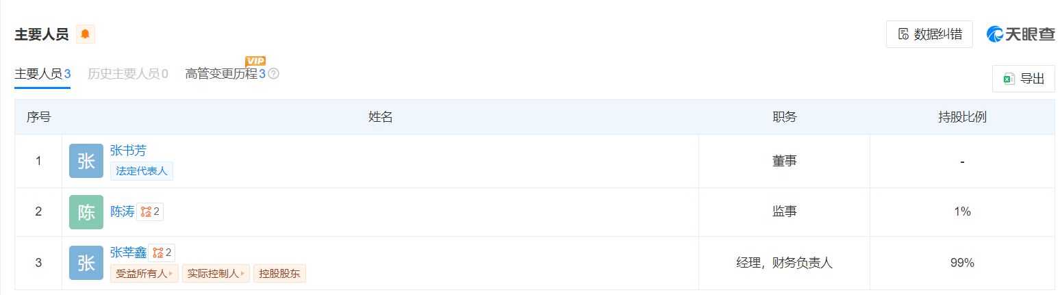 天眼查App显示,成长奋斗者公司成立于2024年6月,注册资本为¥50万元,经营范围包括食品销售、演出经纪、互联网信息服务等。该公司有两名股东,张莘鑫持股99%,陈涛持股1%。