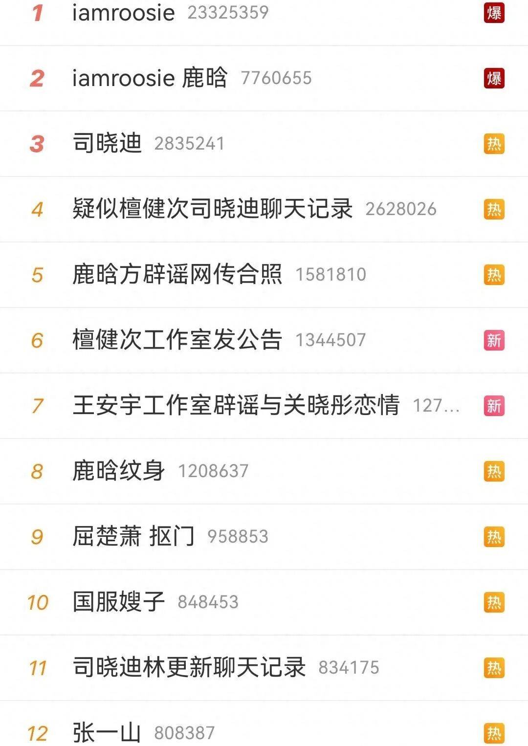 司晓迪的爆料堪称“无差别攻击”,名单一拉出来全是顶流。鹿晗、范丞丞、林更新、檀健次、蔡徐坤、张一山、黄明昊……十多位当红男星被逐个点名,甚至还牵连到了王安宇和关晓彤,凭空抛出两人正在交往的猛料。