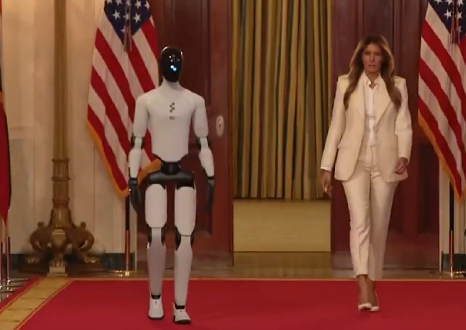 “可以毫不夸张地说,你是白宫迎来的第一位‘美国制造’的人形嘉宾,”梅拉尼娅说道。