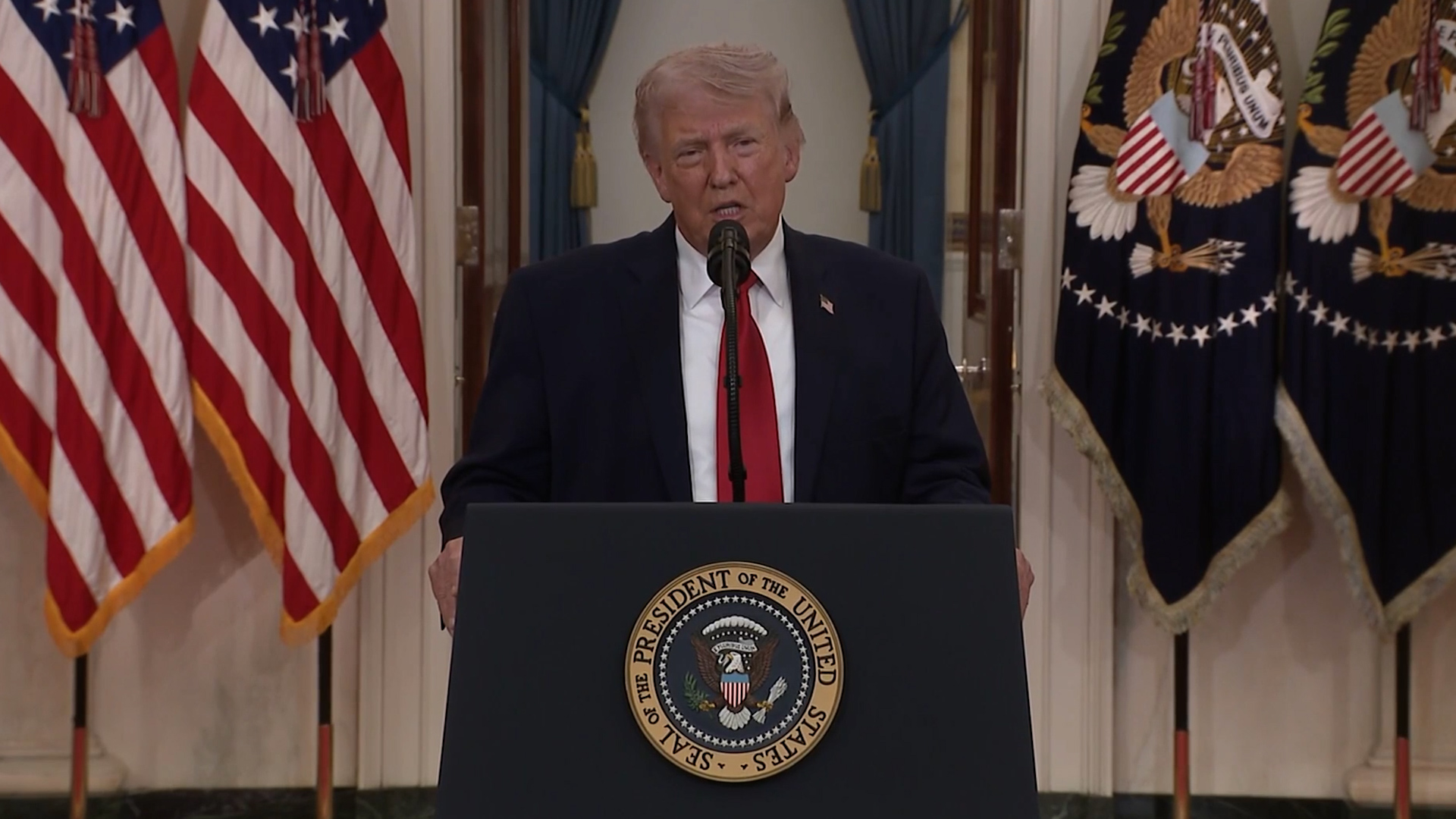 总统川普周三晚在白宫发表全国电视讲话【视频截图】