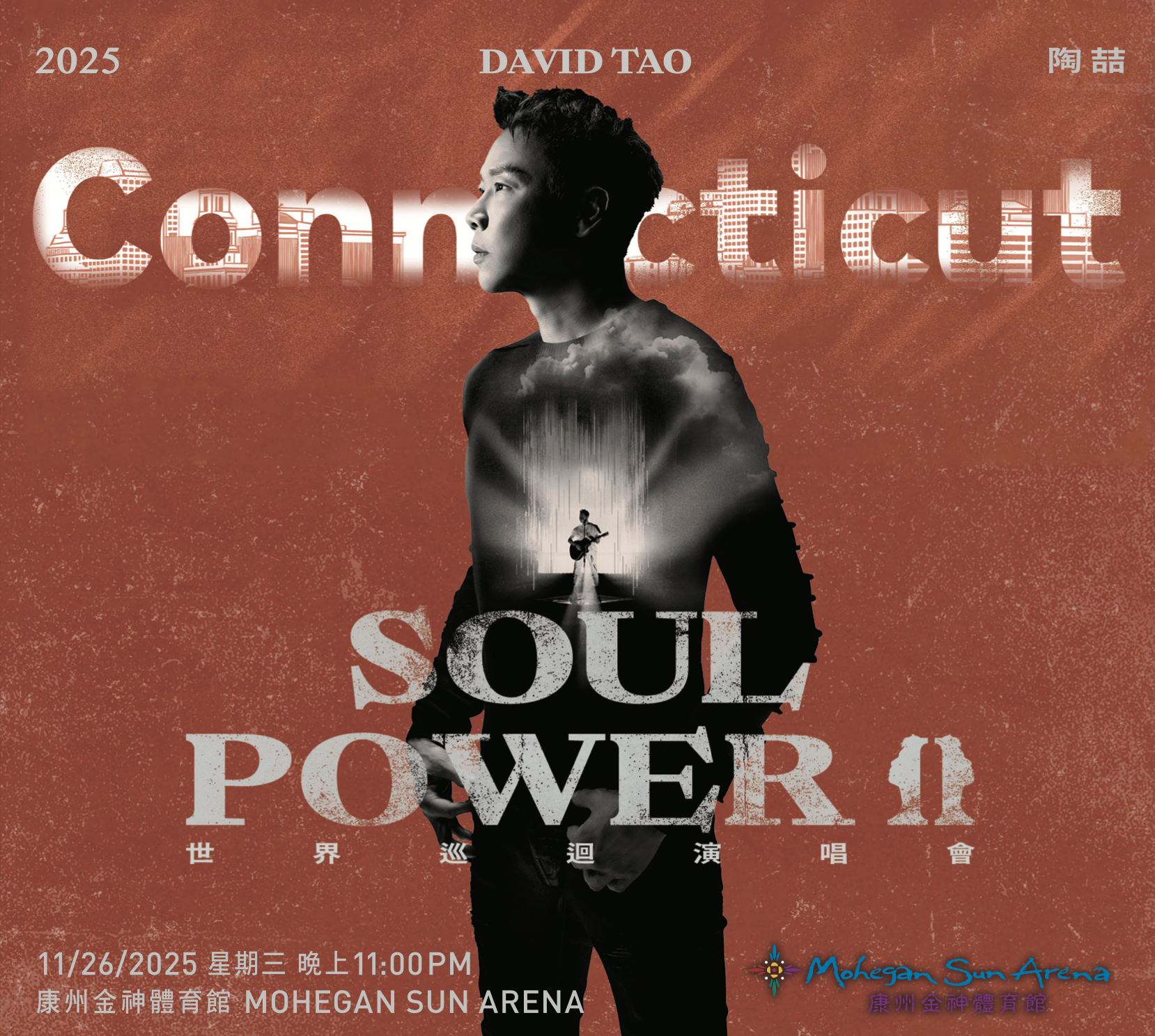 华语灵魂音乐之父陶喆(David Tao)即将于2025年11月26日(星期三,感恩节前夕)晚9时,登陆康州金神体育馆(Mohegan Sun Arena),带来万众期待的《Soul Power II 世界巡迴演唱会》康州站。这场横跨多城、好评如潮的巡演,将以全新升级的舞台与编制,为北美乐迷呈现一场年度最具灵魂的音乐盛宴。
