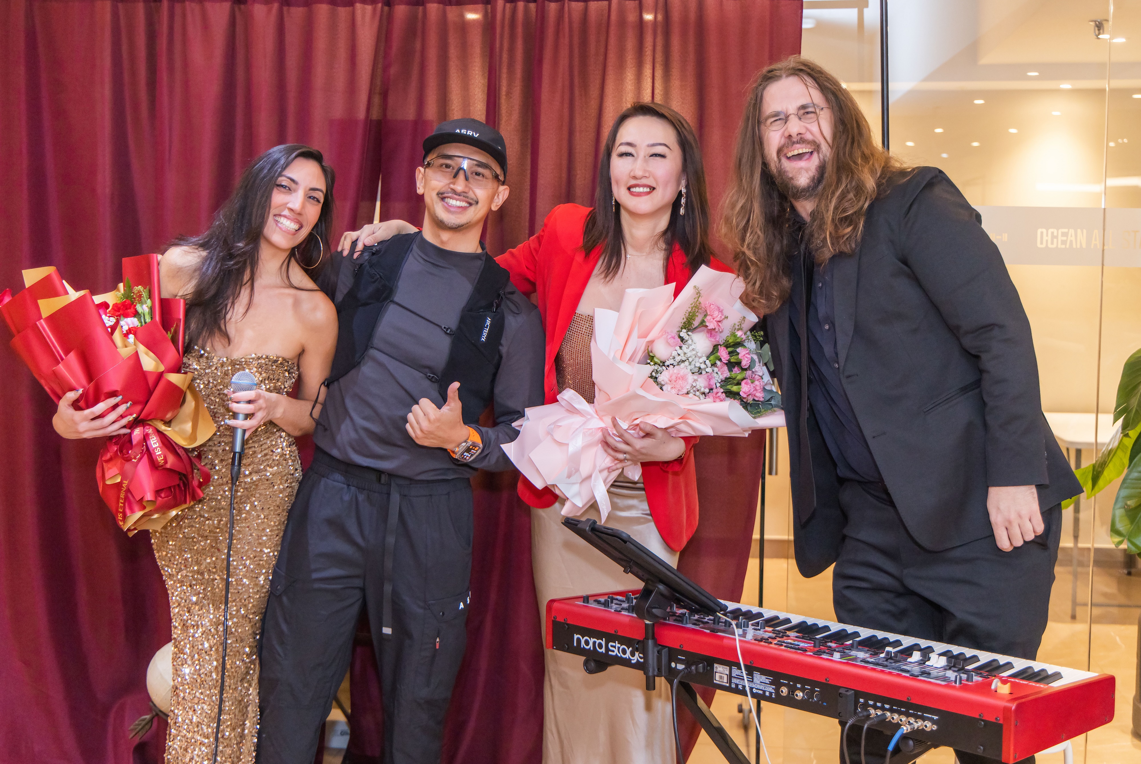 现场国际瑜伽培训师Jinjin与大家共同演绎香槟瑜伽,为自己这一年的成长喝彩。特邀知名美国歌手和键盘手现场演唱席琳迪翁、麦当娜等明星经典歌曲,全场嘉宾相谈甚欢,群星璀璨。