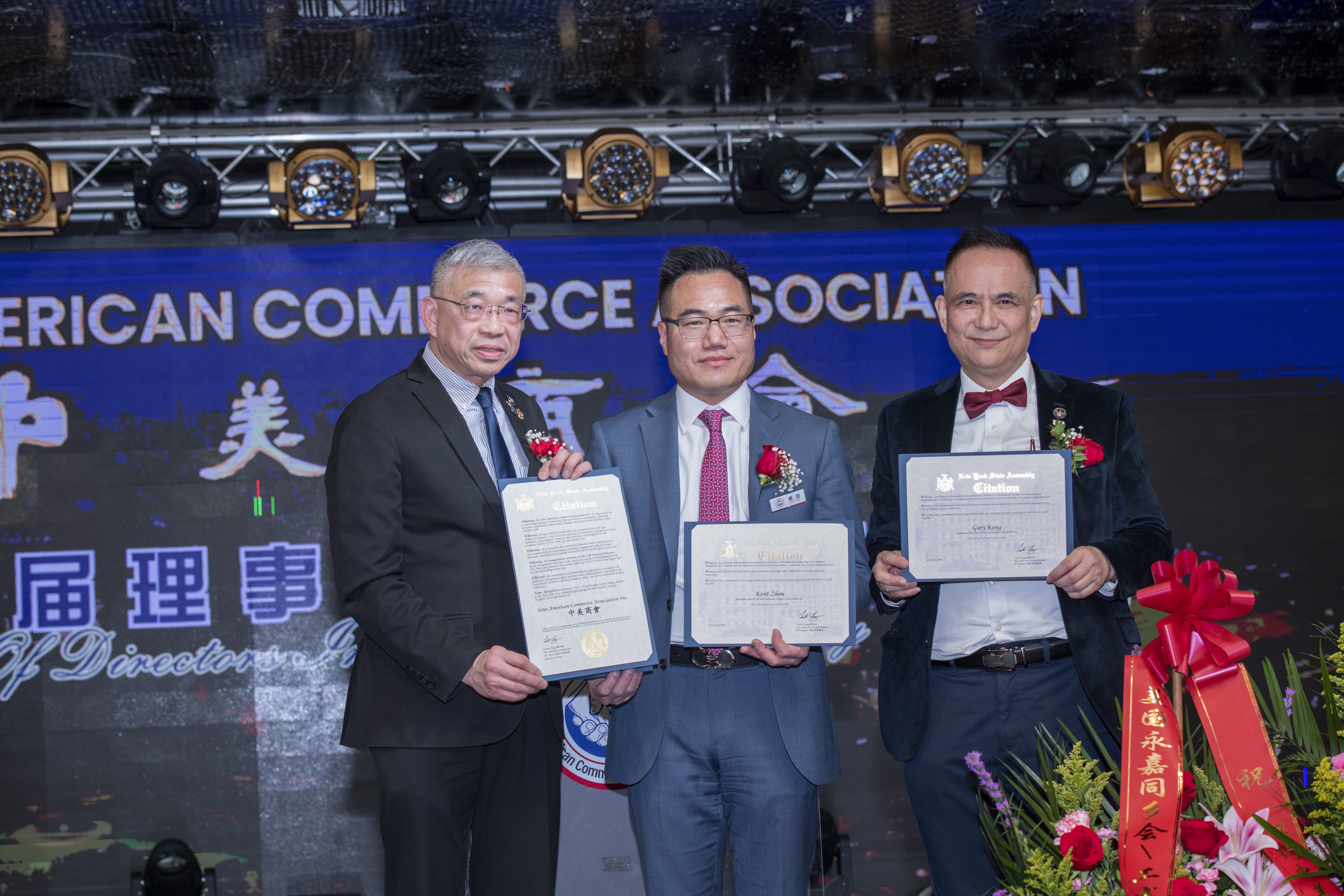 美国中美商会(Sino American Commerce Association,SACA)于2026年1月18日晚在纽约法拉盛君豪酒楼举行第十三届理事会就职典礼暨新年联欢晚宴。来自政界、商界及社区的千余位嘉宾出席活动,共同见证新一届理事会正式履新。典礼上,周克(Kent Zhou)从第十二届会长江锦鑫(Gary Kong)手中接任会长一职,正式出任中美商会第十三届会长。