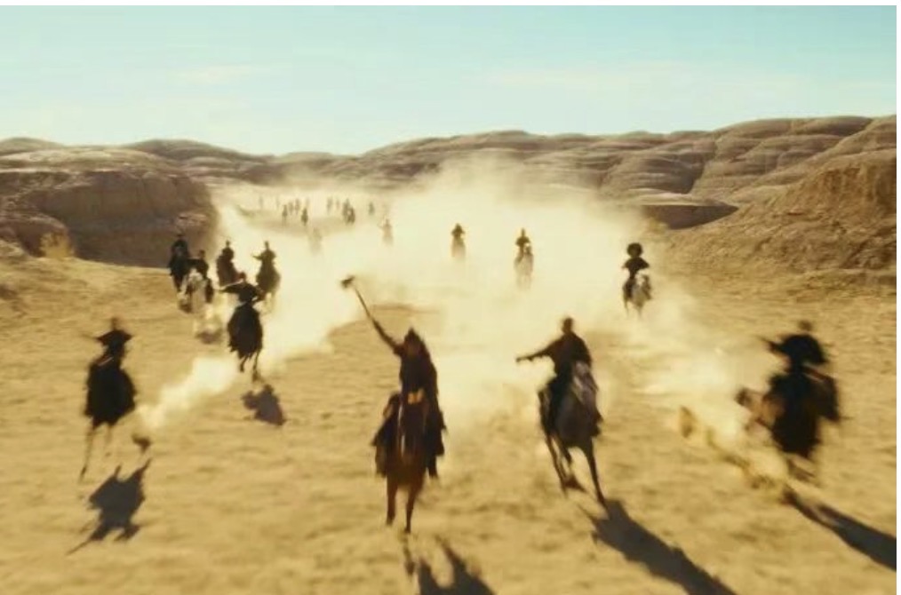 影片约 70% 场景采用实景拍摄,剧组远赴新疆魔鬼城、敦煌等地,在高达 55℃ 的酷热与沙尘暴环境下完成拍摄。《镖人》所呈现的“大漠美学”,并非单纯的视觉奇观,而是将沙粒流动的轨迹与人体动作的力学之美结合,形成一种原始、粗粝却极具力量感的武侠影像风格。