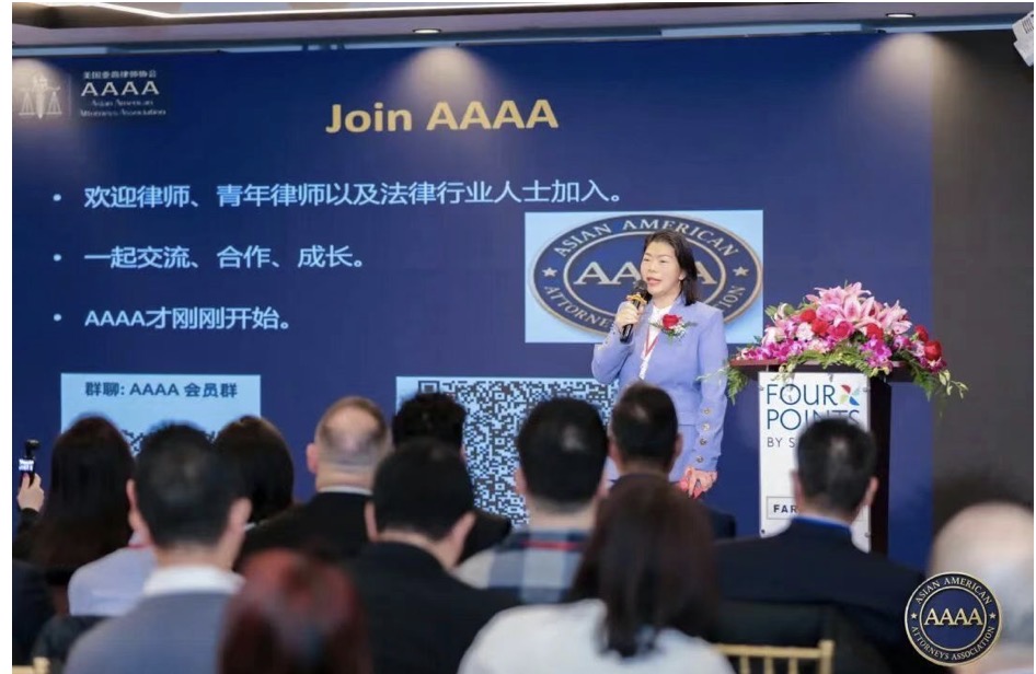 她回顾了协会自2023年成立以来的发展历程与重要成果。AAAA成立的初心,是搭建一个属于亚裔法律人尤其是移民到美国的律师的专业平台,促进律师之间的交流合作,推动法律人才成长,并加强亚裔群体在美国法律体系与社会公共事务中的参与。