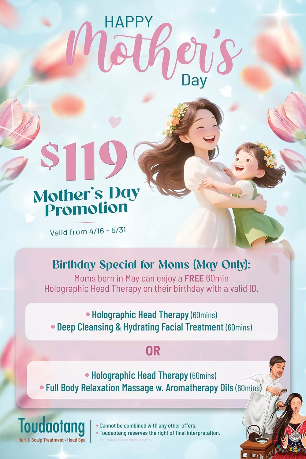 为迎接母亲节,头道汤特别推出限时优惠活动。活动期间,顾客仅需 $119,即可二选一体验以下护理组合: