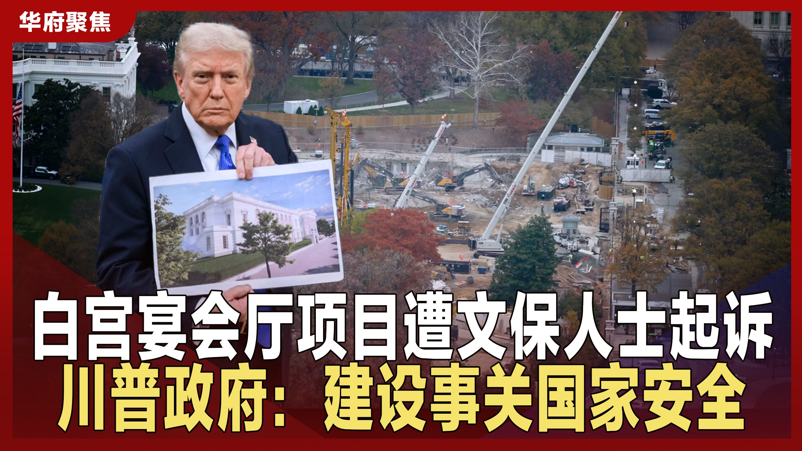 白宫宴会厅项目遭文保人士起诉 川普政府:建设事关国家安全