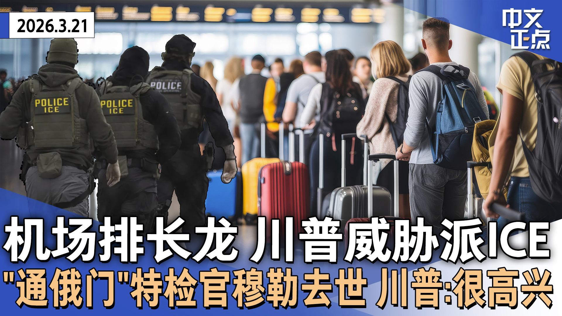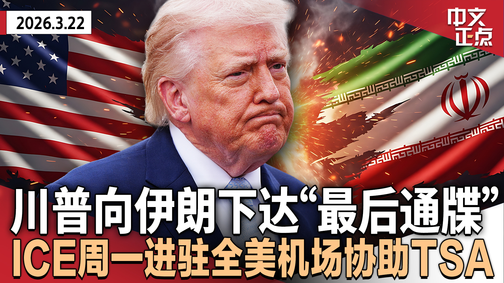 川普下令暂缓打击伊朗发电厂 称美伊会谈达“重大共识”|纽约拉瓜迪亚机场“跑道撞击”致2死 机场一度停飞|ICE多地机场助安检 川普要求别戴面罩|IRS:$12亿退税款无人认领《中文正点》26.3.23