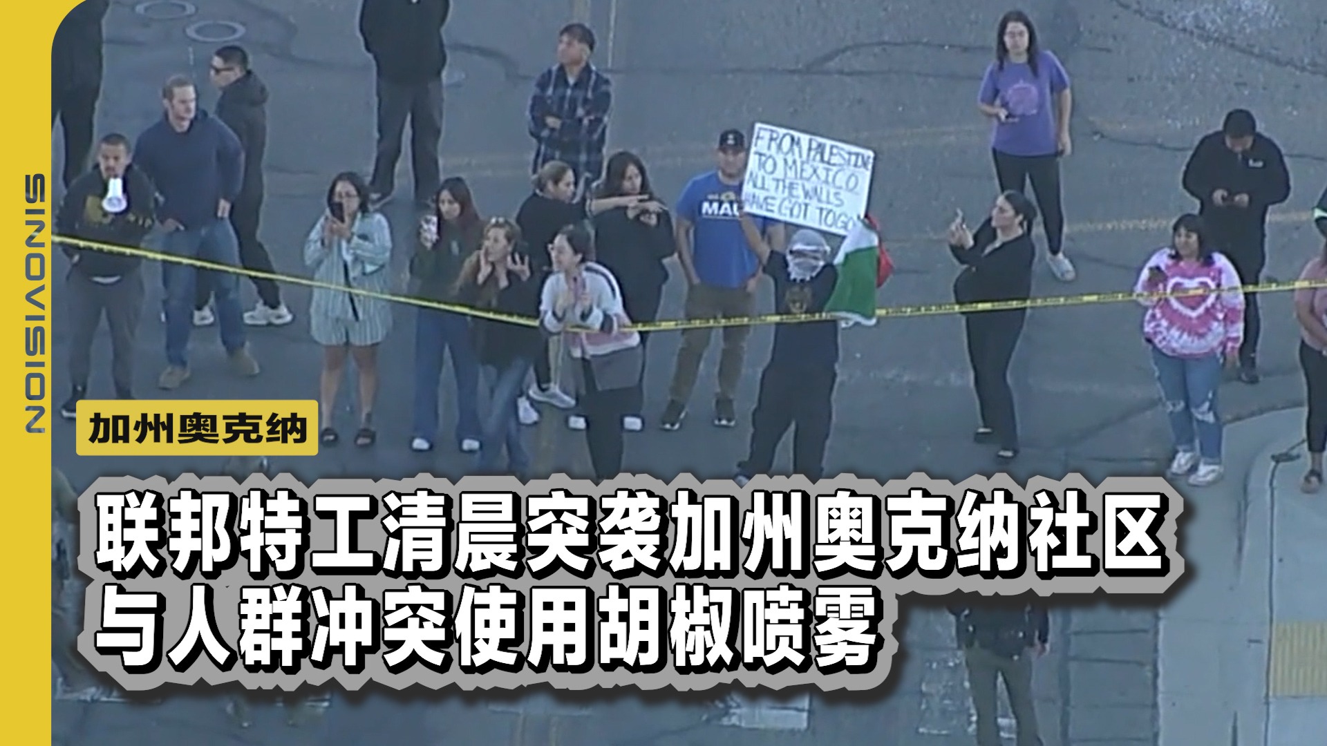 联邦特工清晨突袭加州奥克纳社区 与人群冲突使用胡椒喷雾