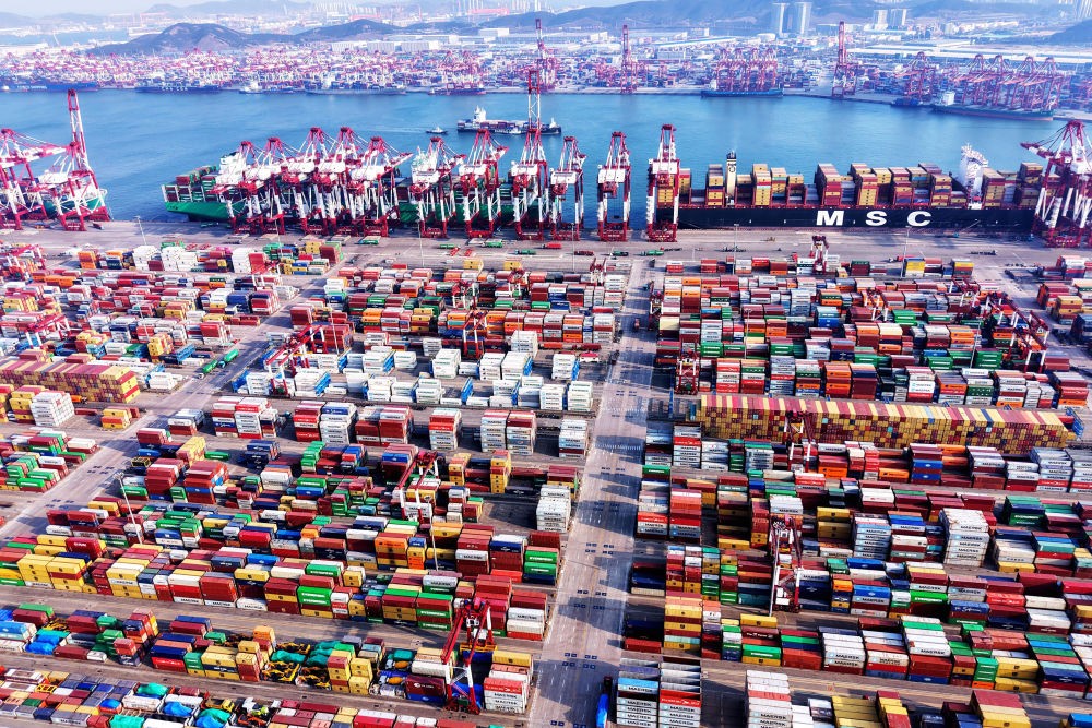 这是2月23日拍摄的山东港口青岛港外贸集装箱码头。新华社图片