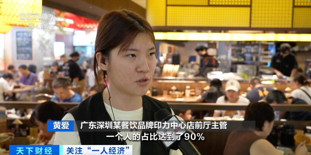 广东深圳某餐饮品牌印力中心店前厅主管黄爱:来我们店用餐的顾客,一个人的占比达到了90%,“一人食”套餐一个月能卖出去4000多单。