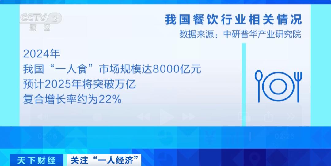 中研普华产业研究院数据显示,2024年中国“一人食”市场规模达8000亿元,2025年将突破万亿元,复合增长率约为22%。外卖平台数据显示,标注“一人食”标签的商家,点餐率提升26%。