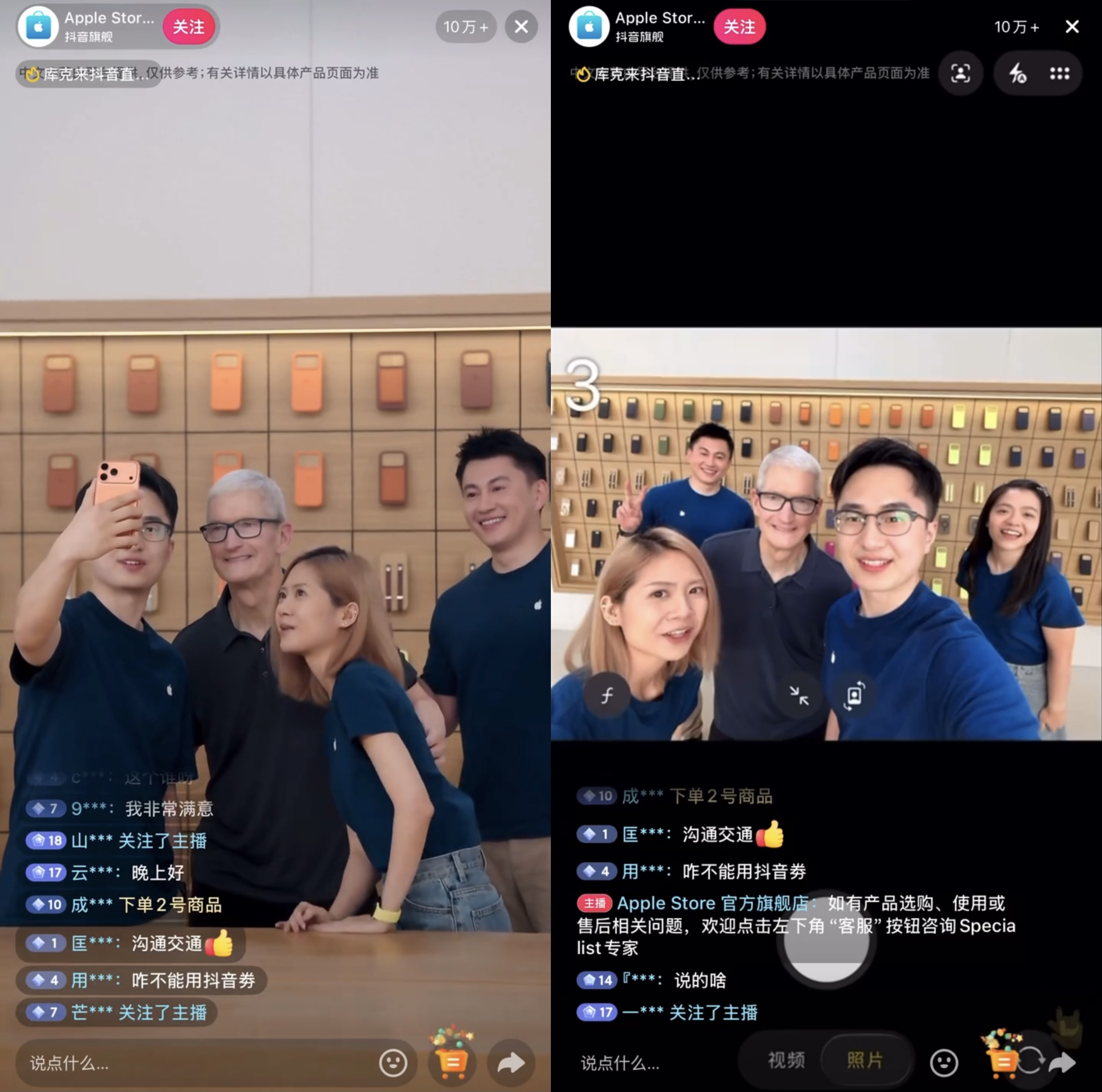 10 月 13 日晚,苹果公司 CEO 库克突然出现在 Apple Store 旗舰店抖音直播间,与中国网友打招呼,并和其他员工一起完成了他面向中国消费者的首场直播带货。随后,“库克来抖音直播了” 迅速登上热搜榜。