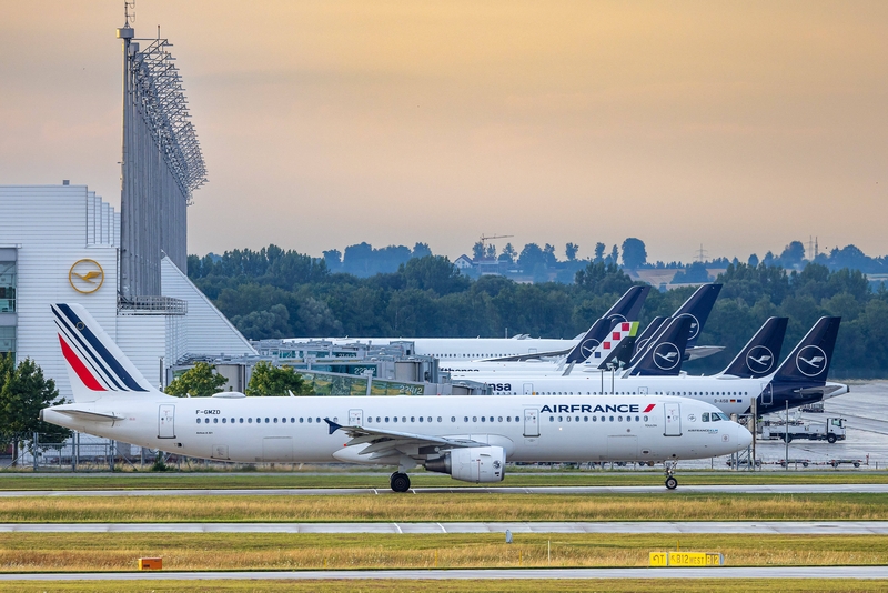 7月15日,德国奥伯丁市慕尼黑机场跑道,一架法航客机正在滑行。ICPhoto
