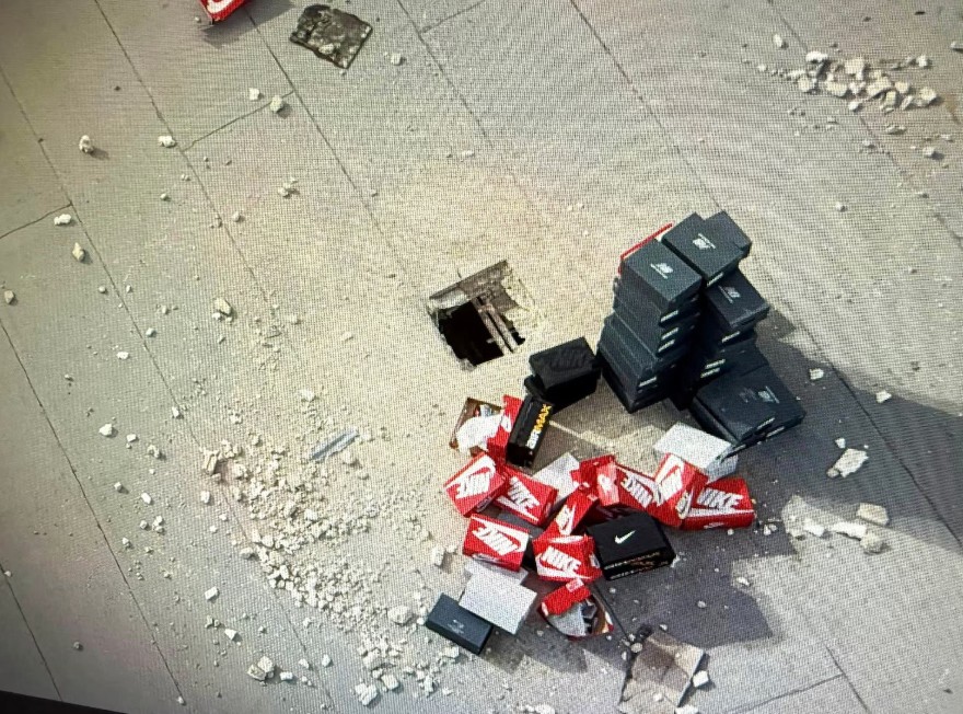 美国中文网报道 在一宗堪比好莱坞电影情节的大胆劫案中,一伙蒙面劫匪凿穿了佛州一家购物中心的混凝土屋顶,潜入一家体育用品商店,盗走了价值数万美元的名牌运动鞋。