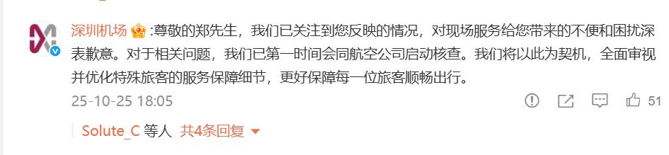 对郑智化先生今天反映的情况,深圳机场高度重视,联合航空公司对现场保障情况快速进行了核实。相关情况如下: