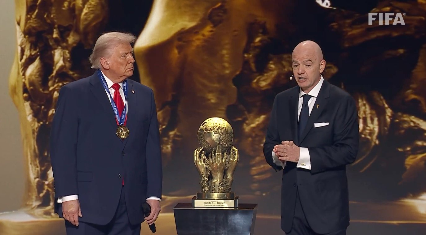 世界杯抽签变颁奖礼!川普获FIFA首届和平奖 亲自戴上金牌