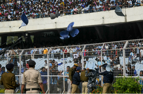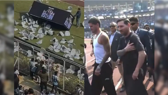NDTV说,梅西原计划绕场一周,但也因现场局势逐渐失控而未能完成计划,仅停留大约20分钟便离开,一些活动也提前结束。现场情况随后变得愈发混乱,不少球迷扔瓶子、摔海报,震耳欲聋的嘘声响彻整个体育场。