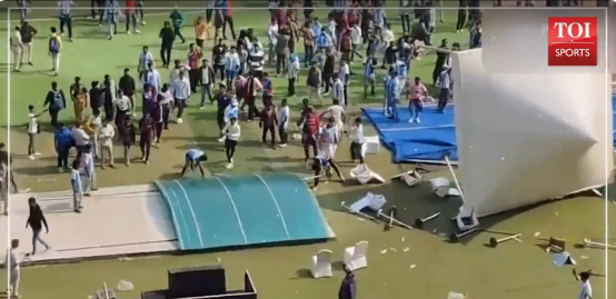 当地时间13日,加尔各答盐湖体育场看台上的座椅被扔下来。图源:外媒