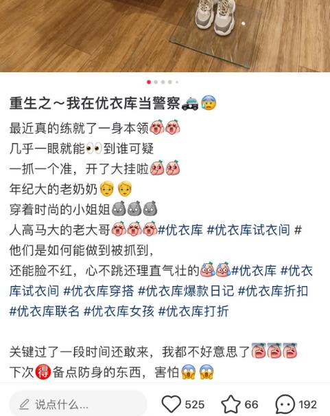 此外,还有自称在优衣库门店工作的网友表示,“我在优衣库当警察,几乎一眼就能看到谁可疑,一抓一个准……”
