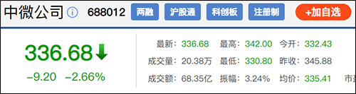 截至1月9日收盘,中微公司股价报¥336.68元/股,总市值为¥2108亿元。按此收盘价推算,尹志尧拟减持的约29万股股票市值约为人民币¥9764万元,拟套现近¥1亿元。