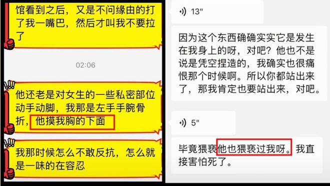 王莉还晒出了猥亵相关的聊天截图,有队员给她发消息说“这个东西确确实实发生在我身上,我很痛恨那个时候。所以你都站出来了,我也要站出来。毕竟,他也猥亵过我。”