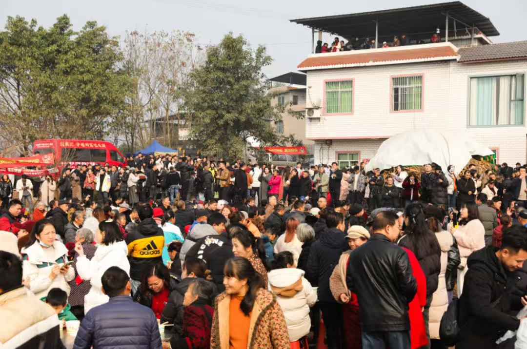 赶来“呆呆”家吃“刨猪宴”的游客。图源:“合川发布”公众号