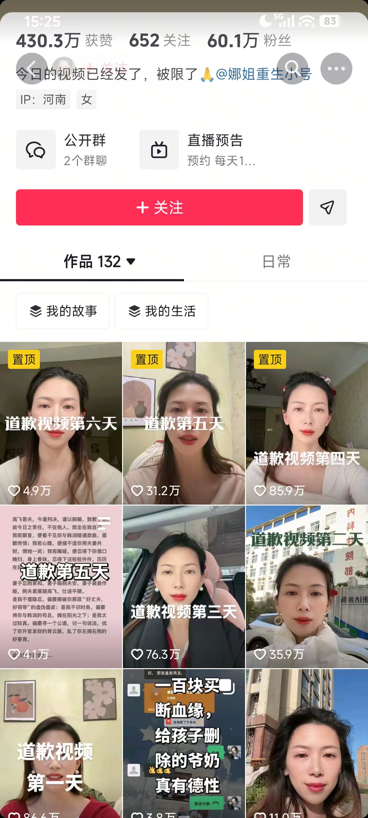 此前,河南女子牛娜在抖音连续多天发布向丈夫的公开道歉视频走红。至1月17日,“娜姐重生”抖音账号已发布六条道歉视频。