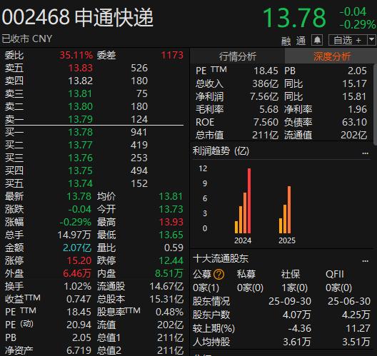 针对本次诉讼对公司的影响,申通快递表示,涉诉股份约占上市公司总股本的1.33%,该事项不会对公司正常生产经营、内部治理和规范运作产生重大不利影响,也不会改变公司的实际控制权。同时,公司指出,本次诉讼目前仅处于法院立案受理阶段,尚未开庭审理,亦未产生具有法律效力的判决或裁定,陈小英名下持有公司股份是否发生权益变动仍存在不确定性。