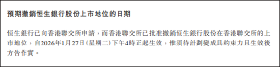 再过了15天,香港高等法院正式批准了这个私有化计划,没有做任何修改,给这场交易吃下了“定心丸”。2026年1月27日,恒生银行正式退市,从一家上市公司,变成了汇丰集团100%控股的子公司。