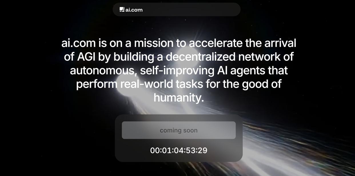 根据周六的最新消息,象征着“人工智能”一词(ArtificialIntelligence)首字母缩写的互联网域名“AI.com”已经以7000万美元的天价转手,并将在本周被用来发布一项“AI代理”业务。