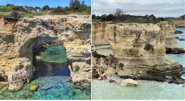 然而,连续数日的极端天气,最终摧毁了这座天然奇观。近日,意大利南部遭遇了持续的暴雨、强风和恶劣海况,狂风裹挟着巨浪不断冲击着海岸岩石,长期的侵蚀加上连日的暴雨浸泡,让 " 恋人拱门 " 的岩石结构变得愈发脆弱,最终在情人节当天,这座矗立已久的拱门不堪重负,轰然坍塌,坠入海中。