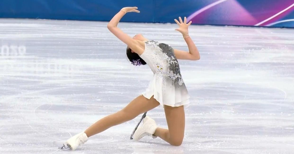 而在节目后半段的一个后内点冰三周跳落冰不稳,未能接上计划中的第二跳,这个连跳的失误成为了关键扣分点。 最终她自由滑得到147.67分,总分224.90分,以不到2分的差距屈居亚军。