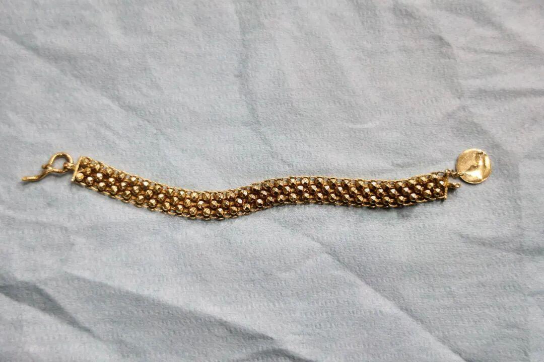 ▲钟女士掉入厕所的金手链。本文图片均由廖炳达摄
