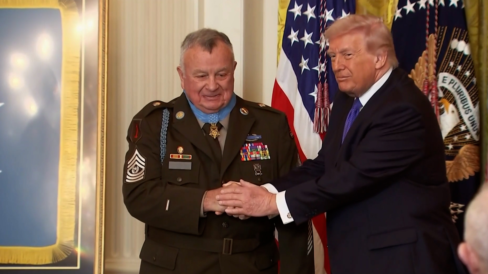 川普向退役指挥军士长特里·P·理查森颁发“荣誉勋章”【视频截图】