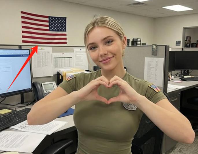 还有网友发现,杰西卡好几张照片里的星条旗是被反着挂的,她自称是美国陆军士兵,但合影里的战机却是美国空军的装备。到了今年3月,美国《每日野兽》等媒体对这个账号彻底打假了,报道援引的专家鉴定,该账号所有图片都是 AI 生成的。