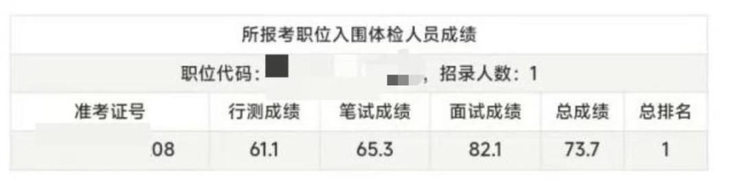 当天,该岗位公布了笔试、面试成绩及综合排名,入围体检人选同步公示,但名单仅显示考生准考证号,未公开姓名。陈磊和李明先后登录系统查询,他们发现,最终入围体检的仍然是笔试第一名的考生,但这名考生的笔试成绩是65.3分,而非他们一直以为的79.7分。