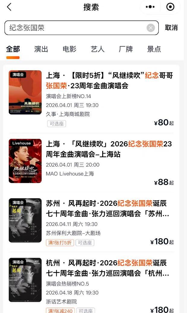 大量“纪念张国荣”演唱会被指侵权