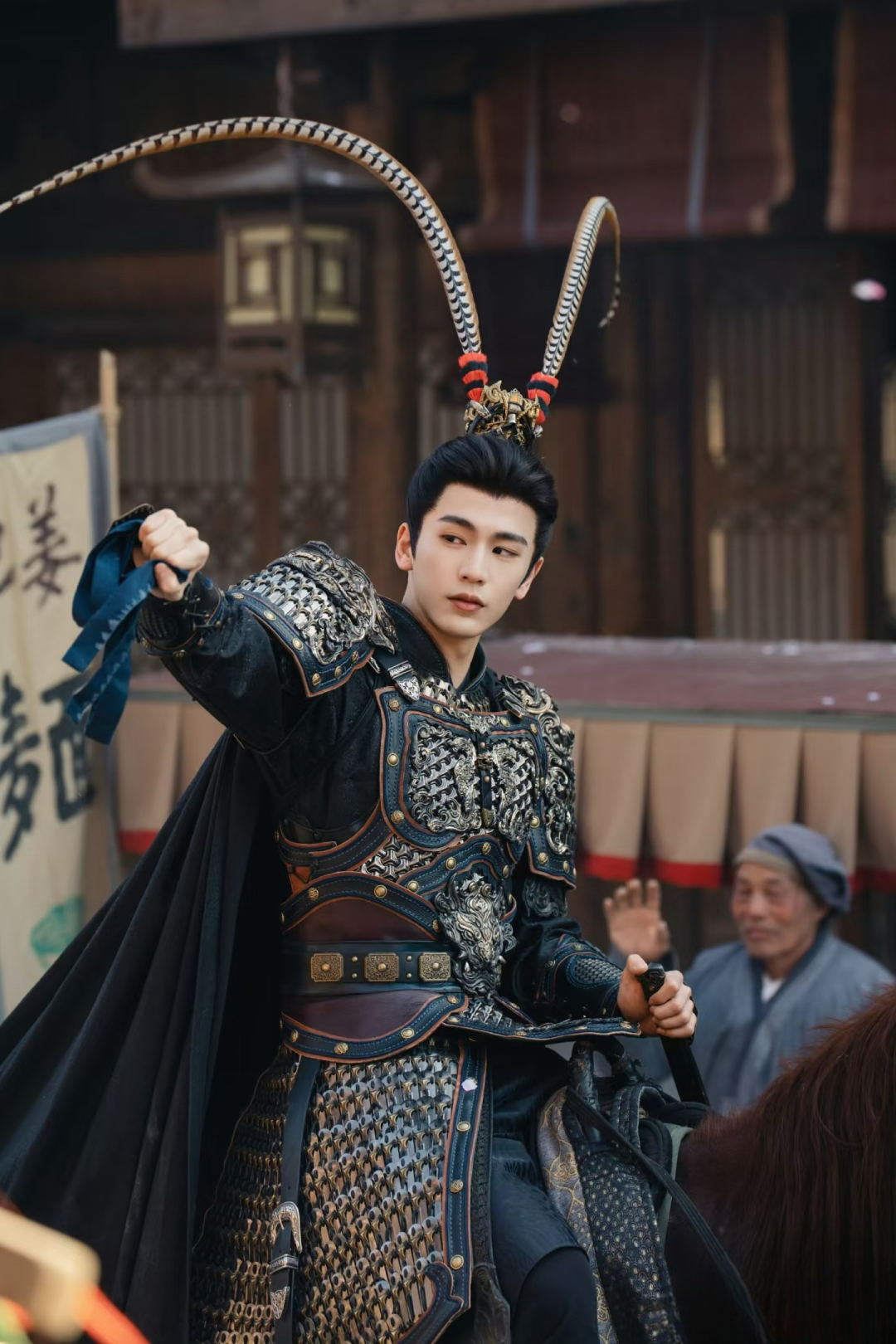 有些遗憾的是,剧中关于武安侯武力场面的展现寥寥无几,更多是靠周围人、百姓传说里的描述。反而,大部分桥段都放在了展现他如何“帅”上,比如武安侯卖猪肉,吸引周围一圈女人为他喊加油;他率兵凯旋归来,身上没有丝毫疲惫,重点聚焦在他分外帅气的雉翎造型上。