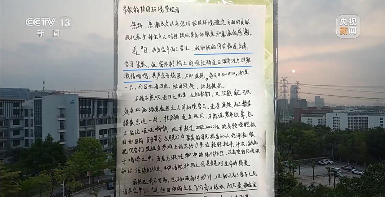 深圳高三学生写信求拆除噪鹃鸟巢 校长一封“拒信”全网点赞