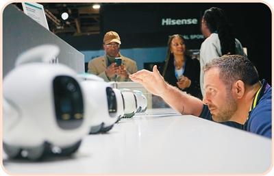 在二〇二六年美国拉斯维加斯消费电子展上,观展者与中国品牌AI智能陪伴机器人互动。曾慧摄(新华社发)