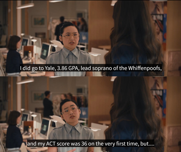 别急,再往下看,Jin Chao以为安迪不想要自己当助理,赶紧补充了下自己的辉煌履历:“我确实是耶鲁大学毕业,绩点3.86,还是威芬普夫斯合唱团的女高音领唱。而且我ACT(美国高考)第一次考就拿了36分(满分)。”