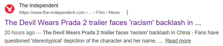 《穿普拉达的女王2》华裔角色名陷种族歧视争议 日韩网民怒了