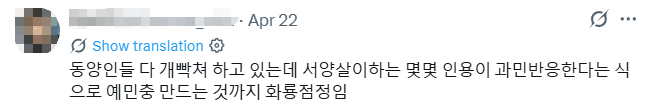 “东亚人都很生气,可有些人偏偏拿‘住在西方的少数人说是过度反应’那套来给人扣上‘玻璃心’的帽子,典中典。”