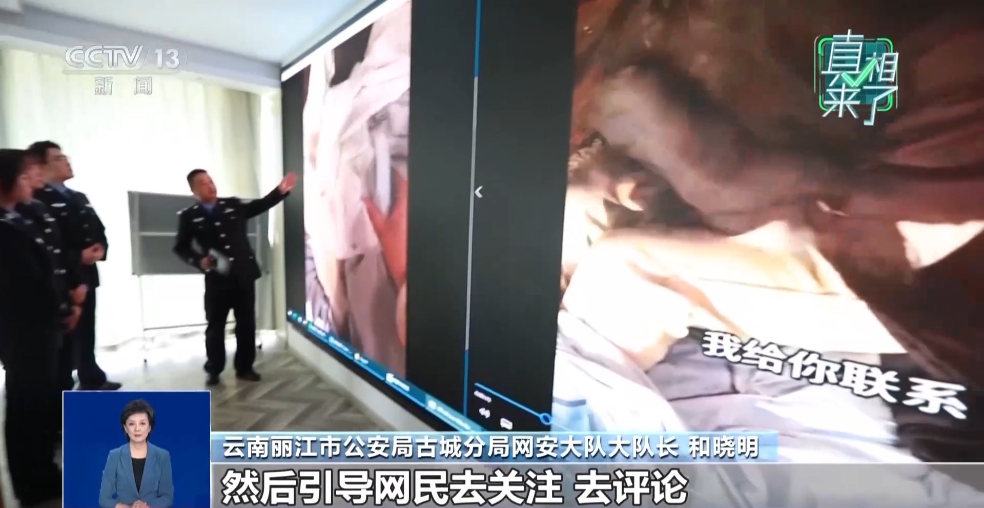 云南省丽江市公安局古城分局网安大队大队长 和晓明:刻意去营造一个人迹罕至、天寒地冻又带有“边境危险、女子受虐”的氛围环境,再加上一些比较煽情的音乐和带有引导性的字幕解说,引导网民去关注、评论。