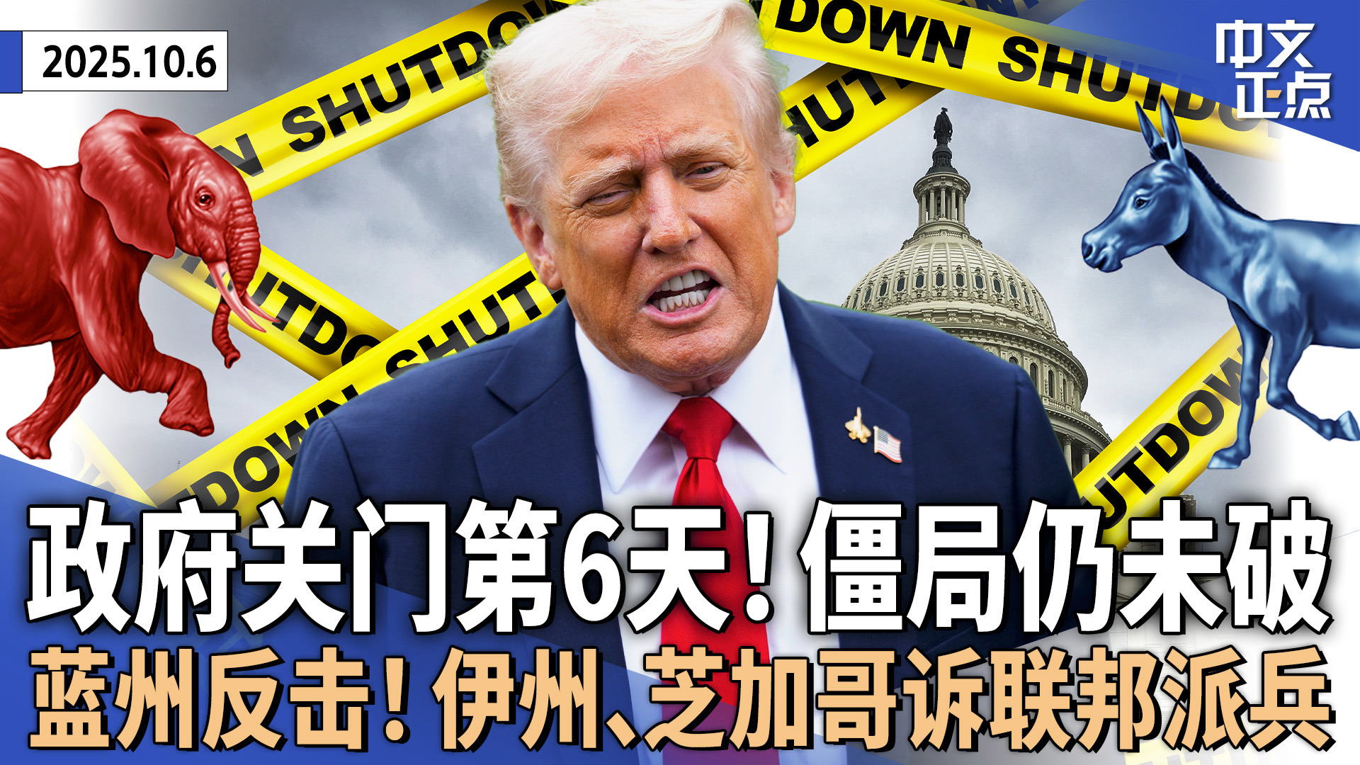 政府关门进入第二周僵局仍未破 川普称对医改持开放态度|蓝州反击!伊州、芝加哥诉联邦政府派兵 法官24小时两阻派兵波特兰|200余国际学生起诉美国务院|以哈间接谈判正式启动|《中文正点》25.10.6